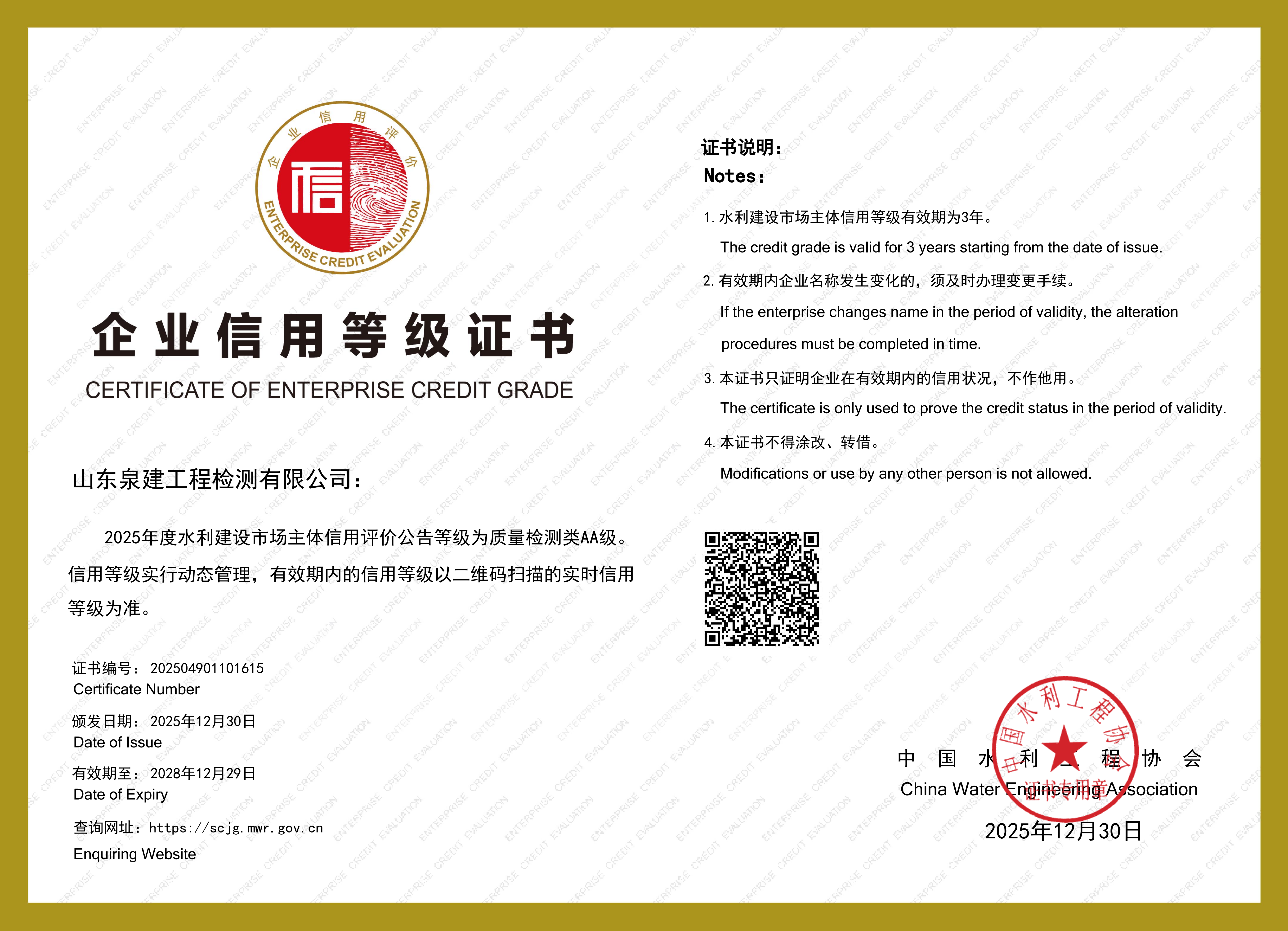 水利信用等级证书